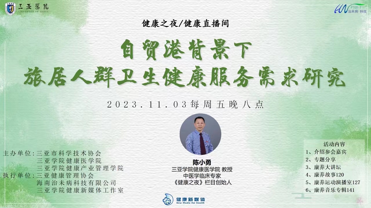 健康之夜209| 自贸港背景下旅居人群卫生服务需求研究