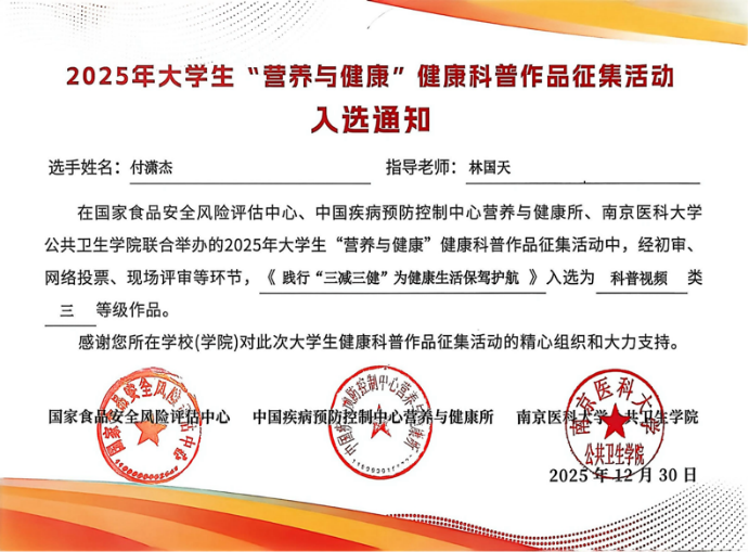 我院学子作品入选国家级健康科普活动 项目制教学成果获权威认可