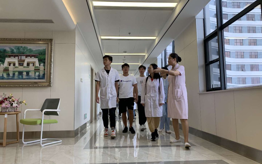 在实践学习中同学们受到了很热情的接待,同学们在体检中心、康复中心等医疗部门参观,过程中认真的听取了医护人员许多的介绍,在作为医疗养护一体的小区急救通道中讲解了救护车专用的隔离带使患者能最快到到达医院,讲解员讲到在过去的救护过程中最快用时1分56秒让患者能在最快时间得到治疗。同时同学们也认识且体验到了许多新兴的医疗仪器,困惑的问题也得到了耐心的解释。
