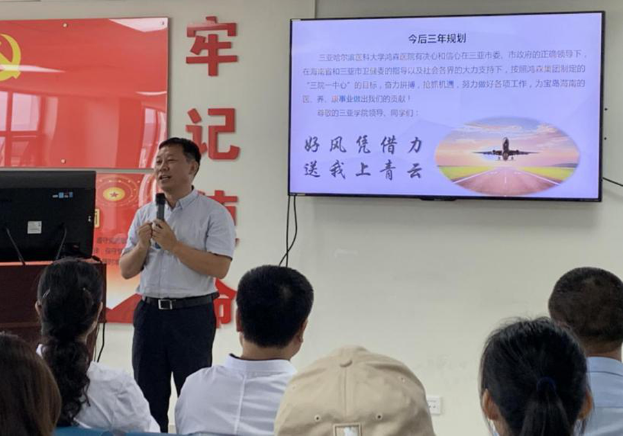在会议上陈小勇教授表示:在政策上国家发改委在健康产业结构上的侧重,希望同学们可以把握未来的机遇,鸿森医院在海南乃至三亚对原有的医疗机构都起到了一定的示范作用,为同学们提供了一个有北方资源的平台,尤其对海南引进高素质人才是一个锦上添花。
