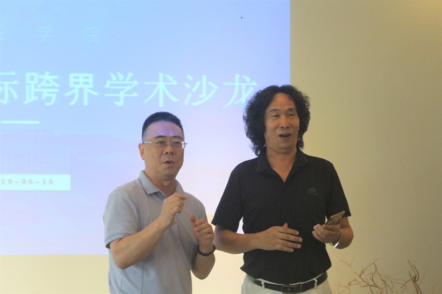 本次沙龙分为创客对话和专业作品分享两大环节。在创客对话环节,音乐学院张巨斌教授和我院陈小勇教授分别分享了他们的学术观点。