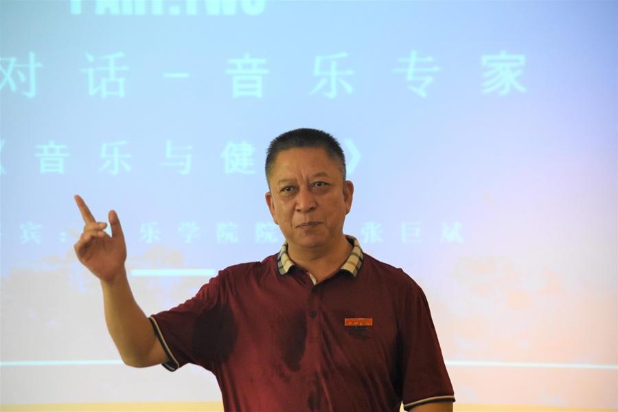 张巨斌教授提到当前生活水平的提高,使人们对健康有了更多关注,而健康是生理与心理的平衡。音乐与健康的关系具备物理和文化两个属性,物理属性上音乐可以与人体产生共振共鸣,文化属性上音乐则可与人的情感相通,这体现了生理与心理的平衡。说到兴起处,张巨斌教授还用20多年前他所写的《音乐与健康》的论文,来为音乐有益健康划定范围。他认为音乐有益于心理健康,可使心理平衡,同时还可解除疲劳、预防疾病,其次,音乐还能延年益寿并有益于临床疾病的冶疗。在分享的最后,张巨斌教授为大家推荐了数首音乐,希望大家在享受音乐的同时收获健康。