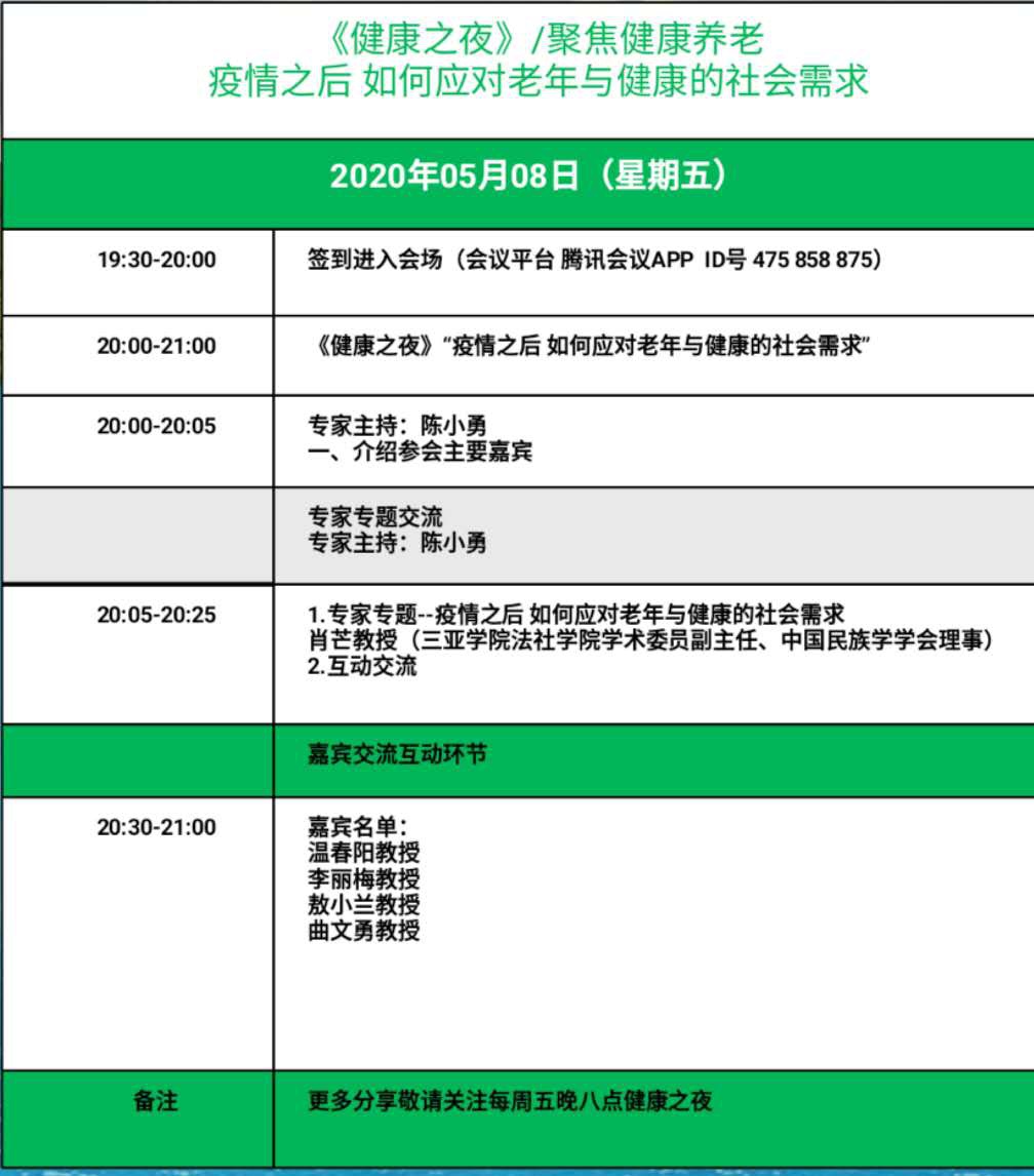 健康之夜|“聚焦健康养老疫情之后如何应对老年与健康的社会需求”专题活动即将开始