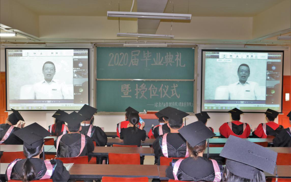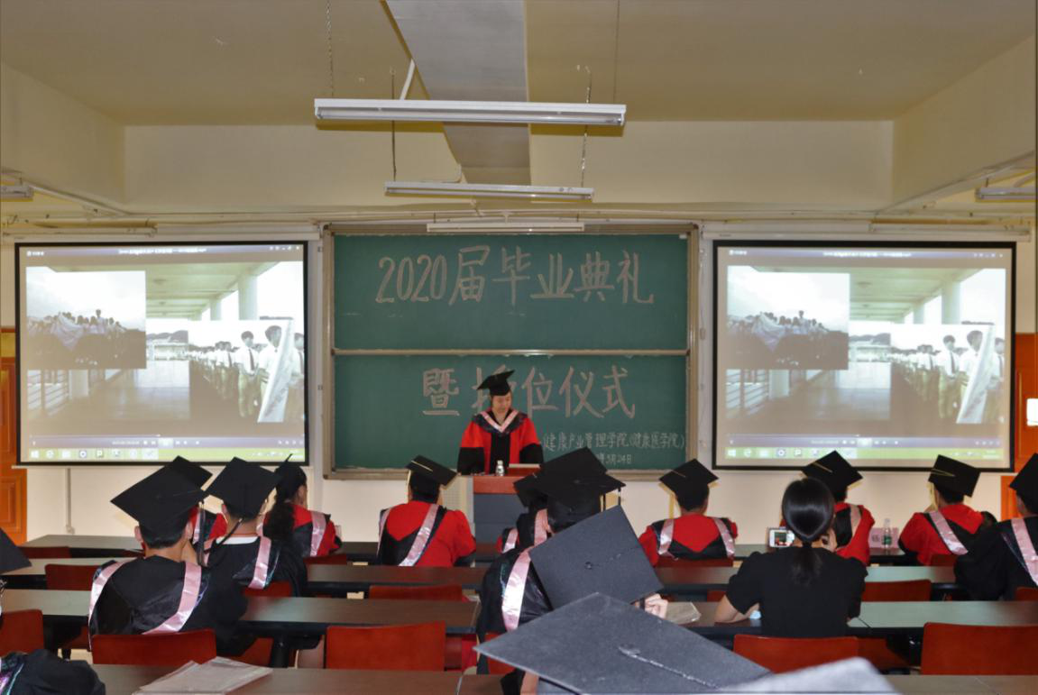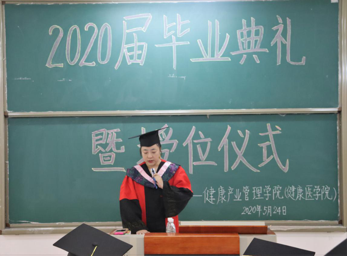 白骏过隙,一晃就是四年匆匆过去,他们踏入大一的懵懂,体会过大二的充实,忍受住大三的紧张,最后步入大四的辉煌,这一刻,他们步入社会了。为了与展翅翱翔的他们告别,健康产业管理学院于2020年5月24日在书定楼202教室召开2020届毕业典礼暨学士学位授予仪式。