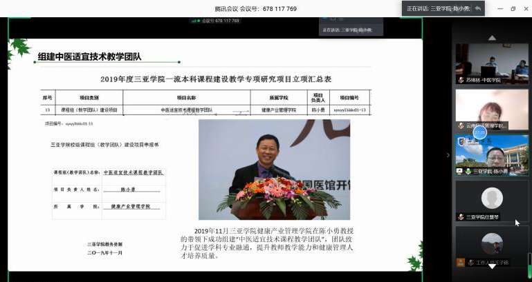 为扎实推进西南地区旅游和健康教育扶贫实验项目成果转化,总结梳理一批可复制、可借鉴、可推广的教育扶贫实践成果,确保扶贫工作务实、脱贫过程扎实、脱贫结果真实,教育部学校规划建设发展中心于5月25日15时通过腾讯会议与智课堂平台开展项目成果转化(线上)经验交流会暨结题答辩会。三亚学院西南项目成果转化项目《痧疗罐疗技术培训与“一带一路推广”》参与此次答辩与经验交流会。本次会议由教育部学校规划建设发展中心创新发展处副处长王丽萍主持,三亚学院健康产业管理学院陈小勇教授对研究成果进行介绍,并由西南项目成果转化研究组专家进行评审,以及相关高校进行经验交流。