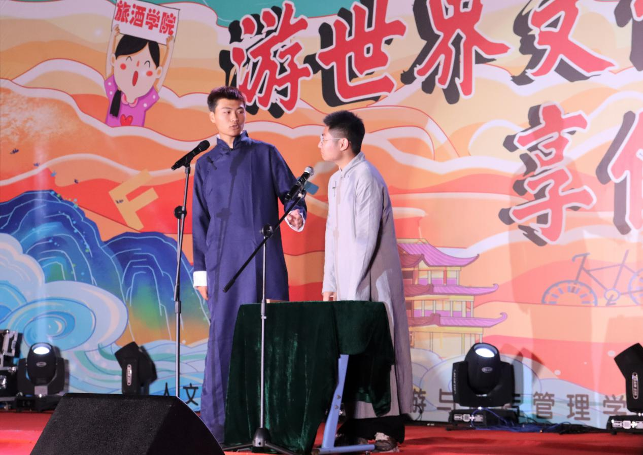 (主持人) 一首《后来》告诉我们往事已矣,要学会洒脱告别。以后要好好珍惜身边的人,不要失去后才珍惜。 美好的夜晚当然需要舞蹈来点缀,随着音乐开始摇摆吧。 相声《怪治病》让大家在笑得不亦乐乎的同时忘却烦恼,这就是相声所特有的魅力。 一支源于拉美文化的拉丁舞,为今晚增添别样的气氛。 话剧《拿什么拯救你》,为大家带来精彩表演。 We were both young when I first saw you ,乐队表演的《love story》展现青春与活力。 穿插小游戏,在活跃现场气氛的同时也拉近与观众之间的距离。 诗歌是语言的舞蹈,舞蹈是身体的诗歌。 一张大合照,记录美好的夜晚。 快乐的时光总是短暂的,在大家的欢声笑语中,狂欢夜已接近尾声。今晚的气温虽有些冷,但同学们高涨的热情并没有减退。 今夜,不仅满足了大家对运动的热切和美食的热情,还增进了我院学生间与师生间情谊。这个狂欢的夜晚,我们的音乐最动听,我们的舞蹈最火热。让我们共同欢度这美好的夜晚。青春不散场,有梦一起追。