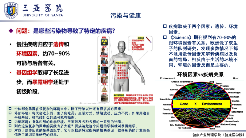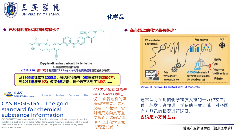 通过化学合成不同的化学品,可以满足人类各种各样的生产生活需求,但由于在生产、运输、使用、废弃过程中的不当行为,使化学品成为影响人类健康的污染物,严重威胁到生态系统安全和人体健康。化学品污染物在环境中广泛存在,但是缺乏对其的深入了解认识。2021年1月4日,健康产业管理学院邀请任丙南教授为健康产业管理学院19级学生开展了“环境中存在的化学污染物及其健康风险”的讲座。