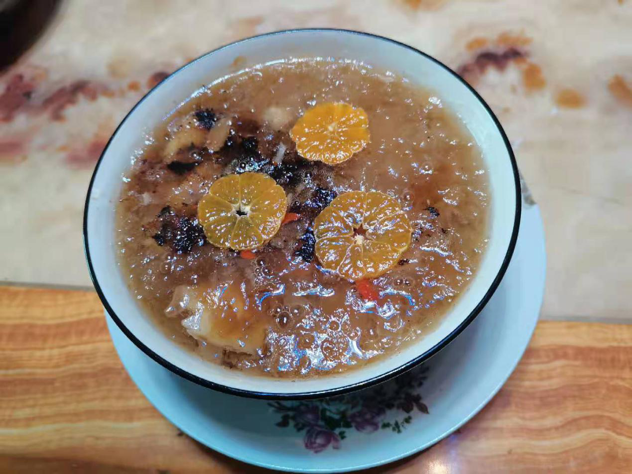 枸杞为中医常用的滋补药物,性平和,味甘甜,入肝肾二经,有滋补护肝、强壮筋骨、养血明目、润肺止咳之功效。可用于肝肾虚弱所致的头晕目眩、遗精、咳嗽、视力减退等症状。银耳红枣枸杞汤是一道滋补的汤,银耳味甘、性平,归肺、胃、肾经。是传统的高级滋补品和珍贵药用菌,具有润肺补肾、止咳生津、提神益气、健脑嫩肤、恢复肌肉疲劳等功能。对老弱病残,特别是手术后病人和产妇,效果尤其显著。因为在一旁耍手机,做的卖相差了点,点好好的汤成了羹,看着有点不堪,但味道还是不错的,银耳Q弹,红枣软烂,喜欢甜食的一定不要错过。