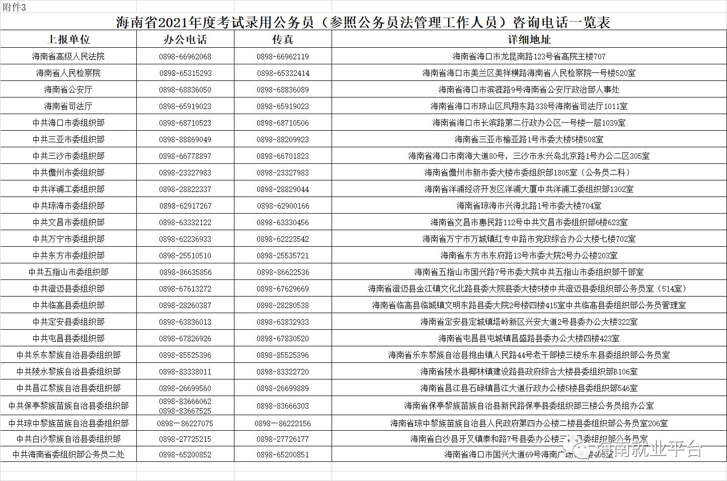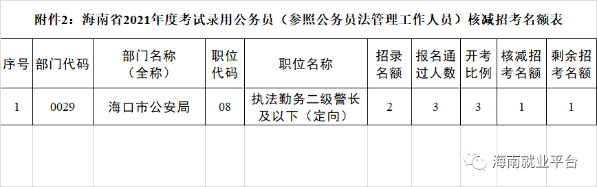 取消招考职位、核减招考名额及改报职位公告!海南省2021年度考试录用公务员公告