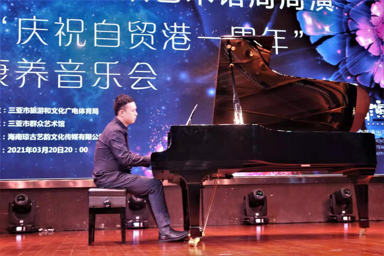 根据三亚学院“十四五”发展目标和重点学科(城市治理、现代服务业、康养产业、汽车产业数字化和金融产业数字化)发展规划,音乐学院与健康医学院/健康产业管理学院在分析“后疫情时代”健康产业发展及艺术生活需求的基础上,启动“音乐康养”项目计划,康养产业是学校“十四五”重点发展学科之一,也是“后疫情时代”海南和国家要发展的重点产业,将通过跨学院、跨学科的音乐康养学术研讨、康养音乐会、健康之夜(线上)、康养妙音坊等途径和形式,研讨康养音乐的内容、形式、途径,研讨音乐康养方面的课题申报、校企结合等方式,努力打造三亚学院音乐或艺术康养的特色学科和专业。2020年6月1日,国家颁布《海南自由贸易港建设总体方案》,为庆祝自贸港建设1周年,推动三亚和海南的健康产业的发展,2021年3月20日晚8:00,由健康医学院/健康产业管理学院与音乐学院合作举办的“庆祝自贸港一周年康养音乐会”在三亚市群众艺术馆举办。三亚学院副校长刘晓鹰、健康医学院/健康产业管理学院院长陈小勇教授、音乐学院院长张巨斌教、三亚学院师生以及社会各界人士共同聆听“庆祝自贸港一周年康养音乐会”。