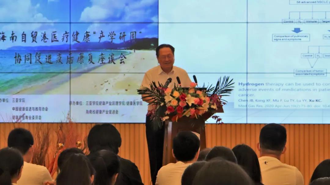 海南省健康产业促进会会长、海南省卫生健康委员会副巡视员曹江表示,海南自贸港医疗健康“产学研用”协同促进疫后康复座谈会由中国健康促进与教育协会健康产业专业委员会与三亚学院联合主办,三亚学院健康医学院、海南省健康产业促进会等联合承办。氢离子是新能源,在医学上有重大作用,能造福于人类。健康产业作为海南省的支柱产业,在氢离子上,三亚学院应大量培养医学应用人才。