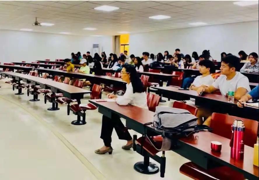 (邓并教授与同学们一道认真听讲)