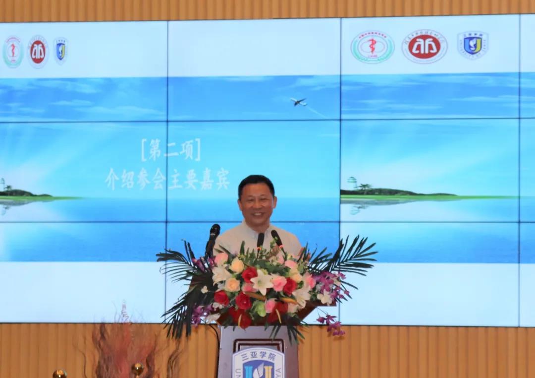开幕式第三项,由三亚学院学术委员副主任、医学学部主任温春阳致辞,温春阳教授首先介绍了三亚学院的发展过程是由吉利集团董事长李书福先生出资建设,并不断紧跟社会发展、创业创新培养人才,持续发展壮大。三亚学院经过“十三五”与“十四五”的建设发展,学校事业欣欣向荣,培养出新时代青年,积极与国家发展同频共振。三亚学院并在去年申报了两个国家医学专业:护理学、康复治疗学,这在学校的办学中有了医学教育,这有着很好的学科发展趋势,虽然健康医学院/健康产业管理学院刚刚起步,但发展势头蒸蒸日上,也相信三亚学院的医学教育会越来越好。温春阳教授也向各位嘉宾们介绍了三亚是我国唯一的热带滨海旅游城市,是值得留恋的好地方,可以在此了解三亚的高等教育、关注医学教育与欣赏三亚逝水年华里的美丽。