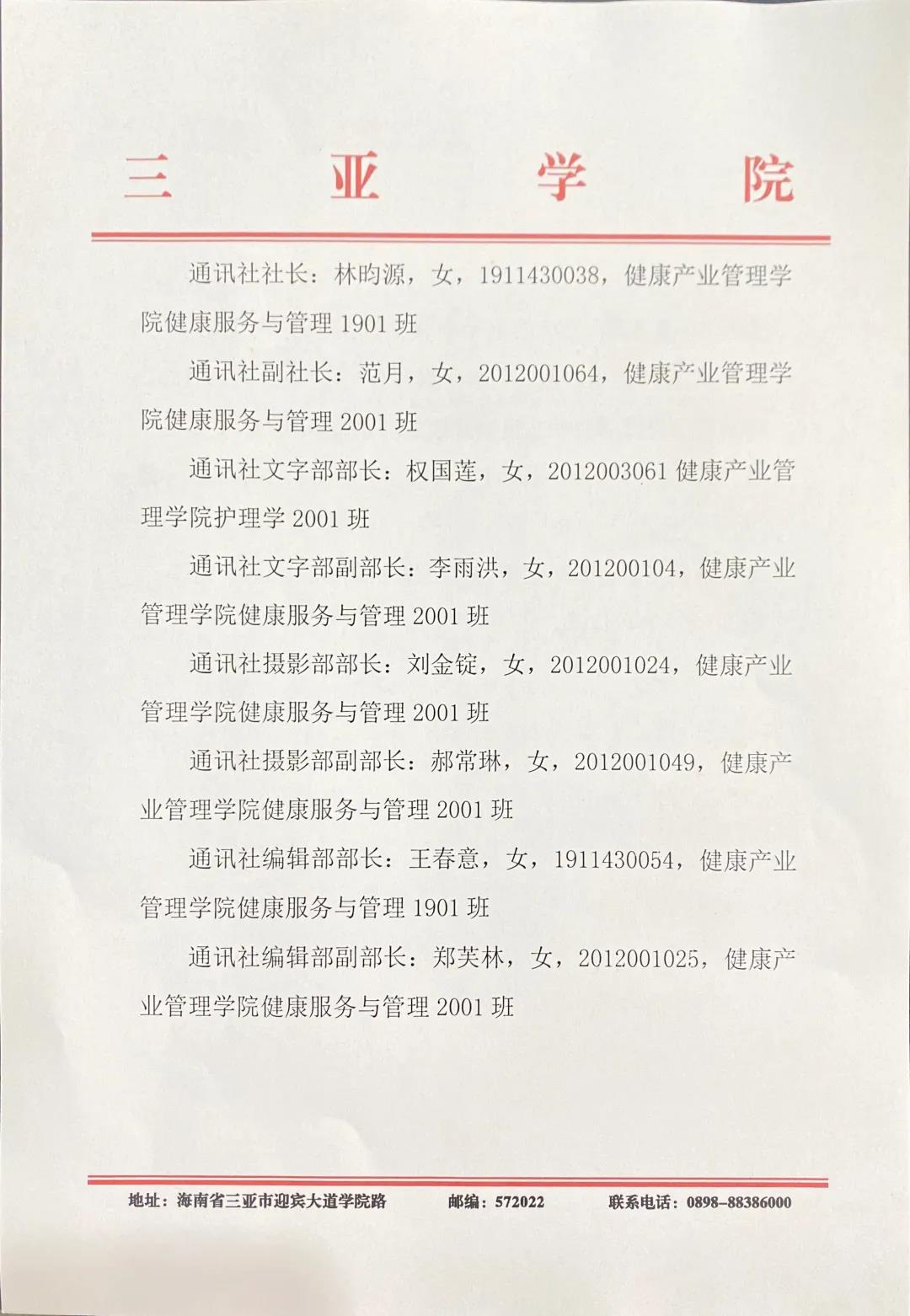 范月同学:在通讯社办公室工作的中心就是紧紧围绕全局工作的建设,重点是上传下达,突破口是信息工作,与文件信息打交道,是学院与学生的桥梁,传达校(院)级的文件精神。我平时是一个喜欢学习的人,平时会学习了解相关摄影、视频剪辑的操作,同时我也有较为丰富的实践经验,在学姐学长的帮助下完成了各项优秀工作。我具有较强的抗压能力,有一个良好的心态优势,相信我能胜任未来的工作。