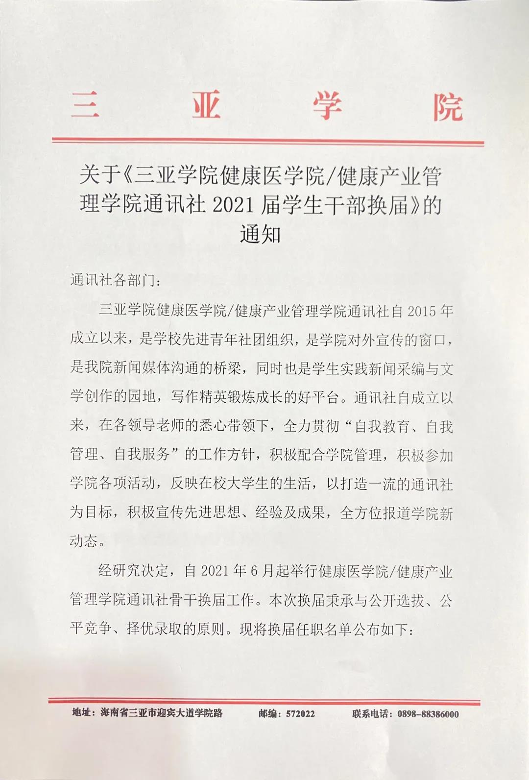 岁月不居,时节如流。为了给一学年来大家的忙碌工作画上一个完美的句号,留下优秀部员并同时为明年迎来新鲜血液做好准备。2021年6月2日于书定楼会议室内举行了健康医学院/健康产业管理学院通讯社学生骨干换届选举大会,本次会议由韩冰社长主持,卢新宇老师和全体部员参与其中。
