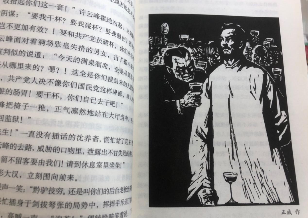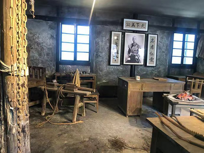 (与狡诈的特务斗智斗勇的许云峰--正威 作) 最令我难忘的是许云峰将要被特务匪徒密裁的那段描写:“死亡,对于一个革命者,是多么无用的威胁。他神色自若地蹒跚地移动脚步,拖着锈蚀的铁镣,不再回顾鹄立两旁的特务,径自跨向石阶,向敞开的地窖铁门走去。他站在高高的石阶上,忽然回过头来,面对跟随在后的特务匪徒,朗声命令道:“走!前面带路。”面对着步步逼近的鬼门关,许云峰没有表现出丝毫的害怕,反而革命信念更加坚定,即使海枯石烂、天崩地裂,也不会动摇。 《红岩》塑造了许多家喻户晓、令人钦佩的英雄形象:英勇斗敌,舍己为人的许云峰;受尽酷刑,坚贞不屈的江姐;天真可爱,但应对敌人却同成年人一样勇敢的小的烈士小萝卜头。江姐作为小说的主要人物之一,对她的描写也十分生动,当她看到丈夫彭松涛的头颅挂在城楼上示众时,表现出了不可思议的勇敢,她把刻骨之痛深深埋在心底,把满腔悲愤化为革命的动力。她说:毒刑拷打是太小的考验!竹签子是竹做的,共产党人的意志是钢铁! (刑讯室内部分器具) 位于重庆市歌乐山麓的渣滓洞集中营是小说中的重要场景,当初国民党迫害革命先烈所用的凶器依然留存,老虎凳、刑架、电椅、皮鞭、钢鞭、铁烙、竹筷子、狼牙棒、美式手铐等,令人毛骨悚然。 (重庆红岩革命纪念馆) 《红岩》真实地再现了革命者为了推翻国民党反动派的黑暗统治,解救生活在水深火热中的中国人民,他们同国民党军警、特务、叛徒不屈不挠地斗争。尤其突出了共产党员的英勇气概、对革命必胜的信念。我们现在的美好生活是无数位先烈血染“红岩”换来的,而英勇和坚贞已经在幸福的日子里慢慢被人遗忘,人们在享受美好生活的同时也淡忘了血与火的历史。我重拾起《红岩》这本书,不但了解先辈为我们建立新中国时的不易,更是学习他们身上坚贞不屈,誓死卫国的红岩精神,它将促使我成为一个真正的人,一个坚强勇敢的人。 图文 | 万梦歌 责编 | 权国莲 编辑 | 劳梅珍