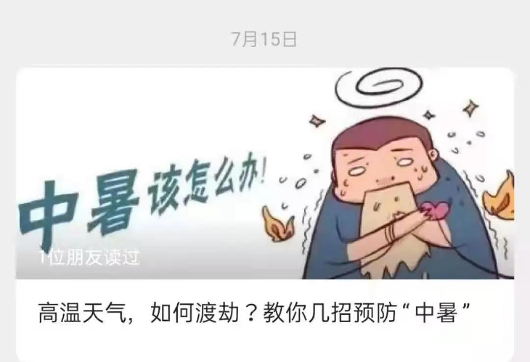 2021年7月15日在第一反应三亚中心公众号上发布《高温天气,如何渡劫?教你几招预防“中暑”》推文。