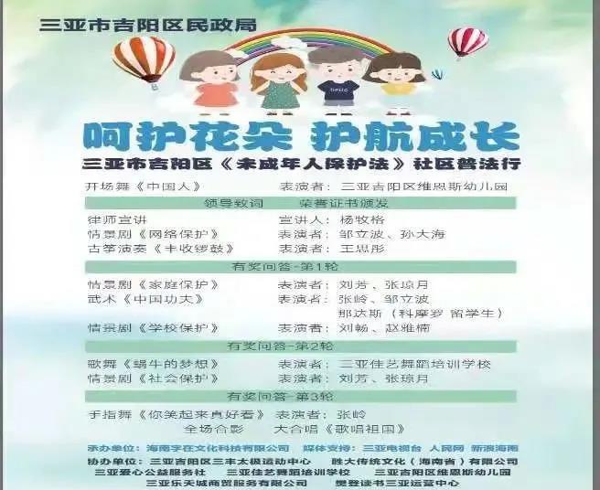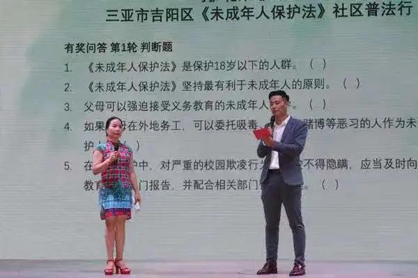 2021年6月30日下午,作为志愿者协助吉阳区民政局完成《未成年人保护法》社区普法行活动的开展。此次活动由吉阳区民政局主办,海南字在文化科技有限公司承办,三亚乐天城商贸服务有限公司、吉阳区维恩斯幼儿园、三亚爱心公益服务社等八家单位协办。在活动开始前,我们进行了简单的培训,熟悉了活动的流程以及自己所负责的工作。虽然在活动开始的时候,有点手忙脚乱,也遇到了一些自己没有遇到过的问题,但经过一段时间适应,我在工作上逐渐得心应手。而且在这次《未成年人保护法》社区普法行活动共发放新版《未成年人保护法》读本900余册,现场近达400人。现场也由普法专员进行深度解读,并且通过互动答题的形式让观众更深入地了解法律法规。虽然此次活动虽然有点累,但是通过此次活动也让我收获了很多东西,也更加了解到如何“保护未成年人身心健康,保护未成年人合法权益”。