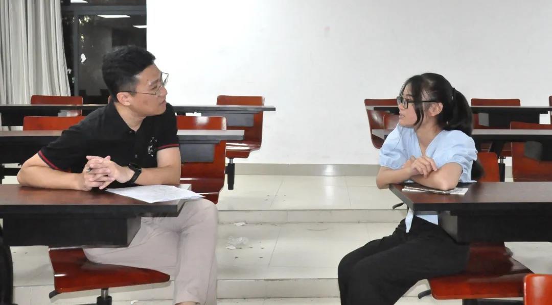 (阿那亚控股集团有限公司总监与大四学生) 本次宣讲会,阿那亚控股集团有限公司总监向同学们详细介绍了阿那亚控股集团有限公司的规模、招聘岗位、岗位主要职责及住宿等情况。阿那亚控股集团有限公司始创于1999年,历经近20年的沉淀,形成了集房地产、体育、文化、教育、旅游及金融投资等多个领域的综合性集团。本次招聘的部门有民宿中心、酒店中心、物业中心、商业中心、直营餐饮、客服团队、公共服务、财务部、人力资源部九个。薪资福利相当丰厚,不仅有工资之外的1000元餐补和高温补贴,还有劳动保护、法定节假日、婚假、产假、哺乳假等多项福利。 (阿那亚控股集团有限公司总监) 经过阿那亚控股集团有限公司总监的一番介绍之后,同学们有的扫码进群投简历,有的留下进行现场面试。 (现场面试) 通过本次阿那亚控股集团有限公司的宣讲,更多即将毕业的大四学生为自己的未来就业做出了决定。在人生的旅途中,我们会经历很多不同的选择,每一次选择都会是不一样的考验,相信他们一定会勇往直前,创出自己的一片天地。 文字 | 蒋淑婷 摄影 | 林昀源 钟文鸿 编辑 | 李雅静