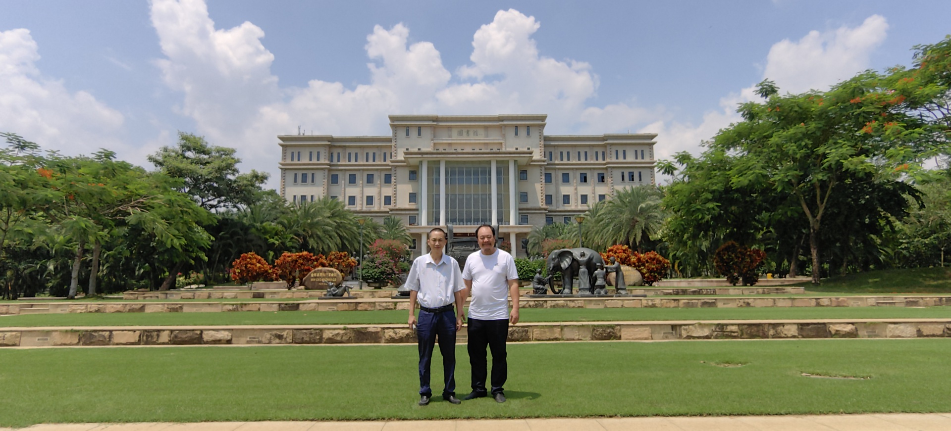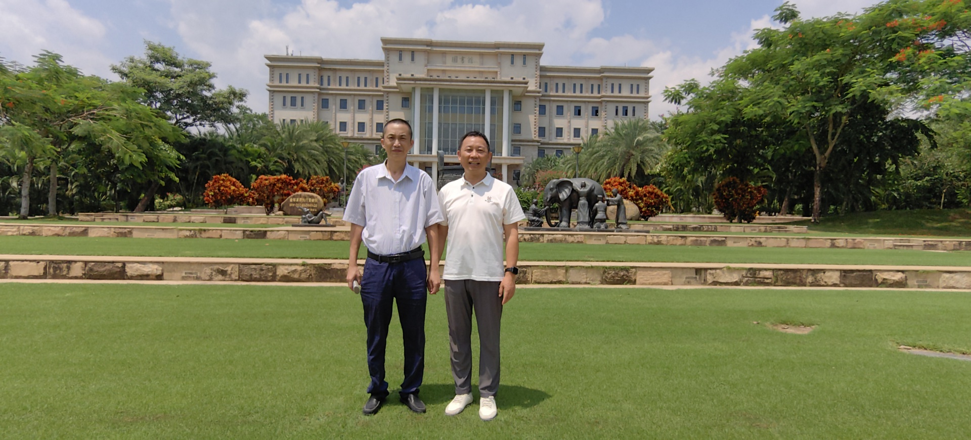 (郑南生副院长一行与陈小勇教授考察三亚学院图书馆并合影)
