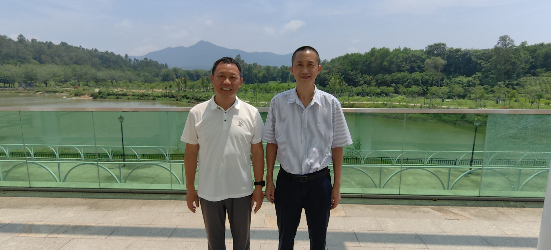 (郑南生副院长一行与陈小勇教授考察三亚学院美丽校园环境并合影)