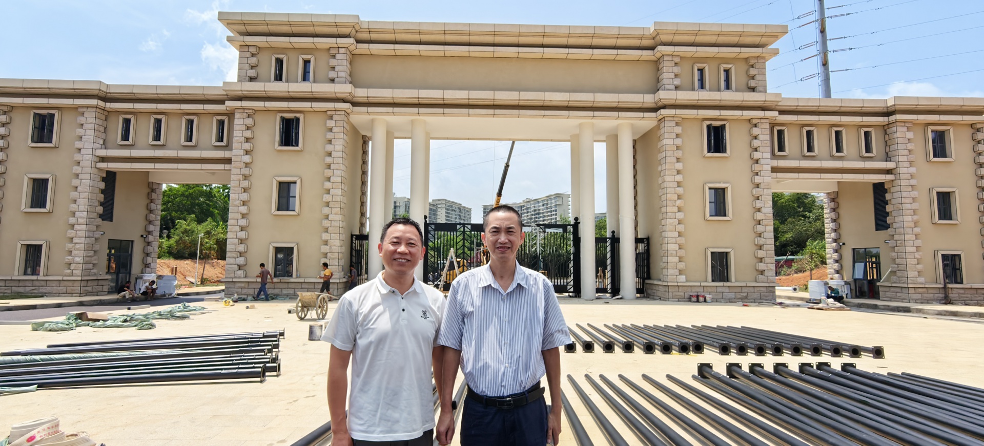 (郑南生副院长一行考察三亚学院即将启用的新建美丽校门并合影)