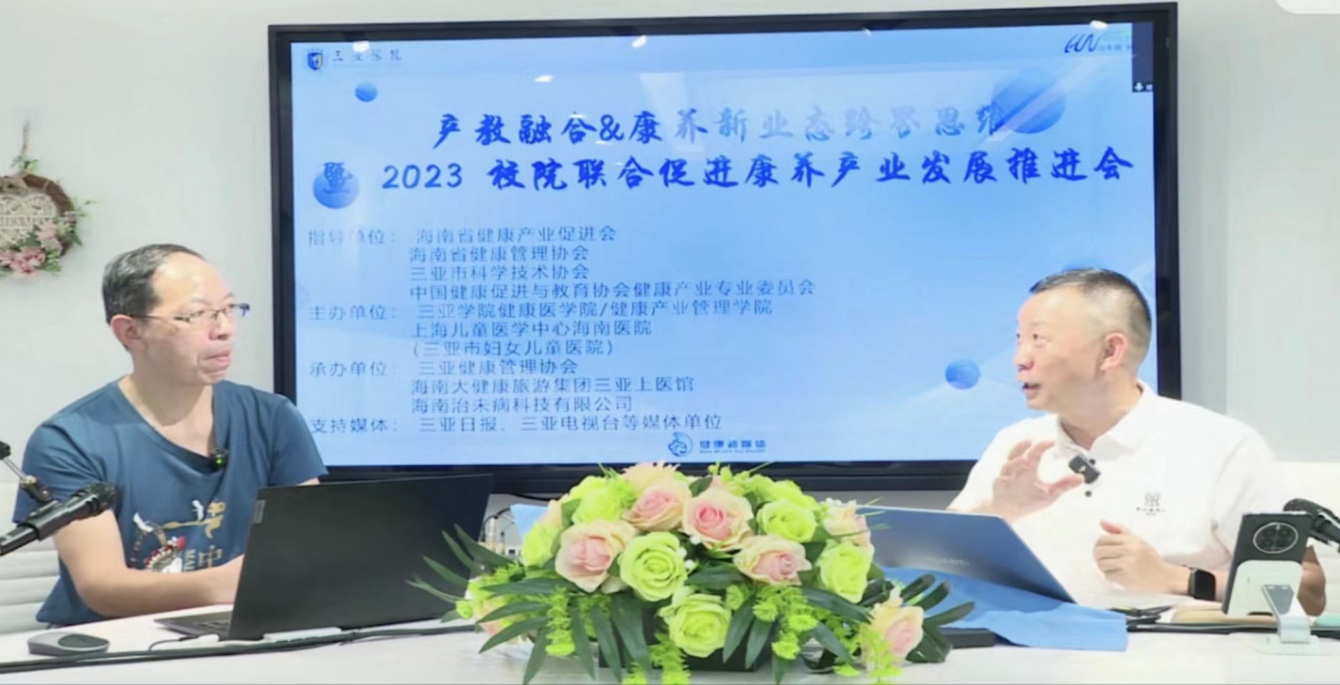 陈小勇教授与刘世建教授在直播间不断交流,对三亚老龄人口心理健康辐射面的状态等健康问题进行讨论。相比疫情之后,如今人们更把预防医学放在比临床医学更重要的位置,刘世建教授向大家介绍关于医学的三大基础板块,并讲解为何预防医学会被国家越来越重视。接下来刘世建教授又向我们介绍他工作当中的探索以及所收获的成果。最后刘世建教授与陈小勇教授共同讨论如何把过去的成果辐射到未来,辐射到健康。