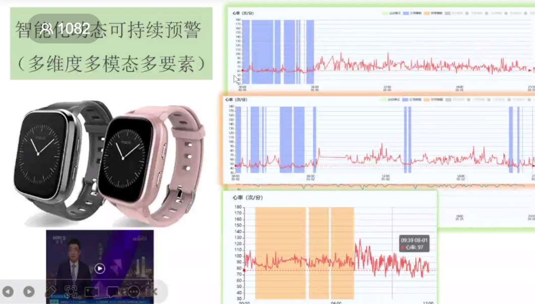 刘世建教授首先介绍到康养项目里面在使用的安定的一款专用的可穿戴设备,它跟普通的目前市面上采用的这些可穿戴设备,比如说腕表,不同的是它具备更详细的一些监测的功能,据了解,除了指标的一些监测以外,它还利用后台的大数据的实时监测和预警功能,利用人工智能的一些先进技术建立了很多算法。除了常规的这些生理指标的说血压、血糖、血脂的监测,另外,它还可以用于肿瘤,以及一些心脑血管疾病风险的预测,这个对一些中老年人、一些高危的人群,比如说患有肥胖、高血压的一些人群来说,有一定的好处。在秋冬季节交换的时候,由于气温的变化比较大,这个时候,往往是一些心脑血管疾病的高发的时期,所以这个时候如果我们能够利用一些可穿戴设备进行实时的监测预计,可以及时的发现对心脑血血管疾病的发病风险,这样可以极大的降低甚至避免这些疾病对于人群健康造成的巨大的威胁和危害。所以我们有效的利用这些可穿戴设备,可以连续的实时性监测。
