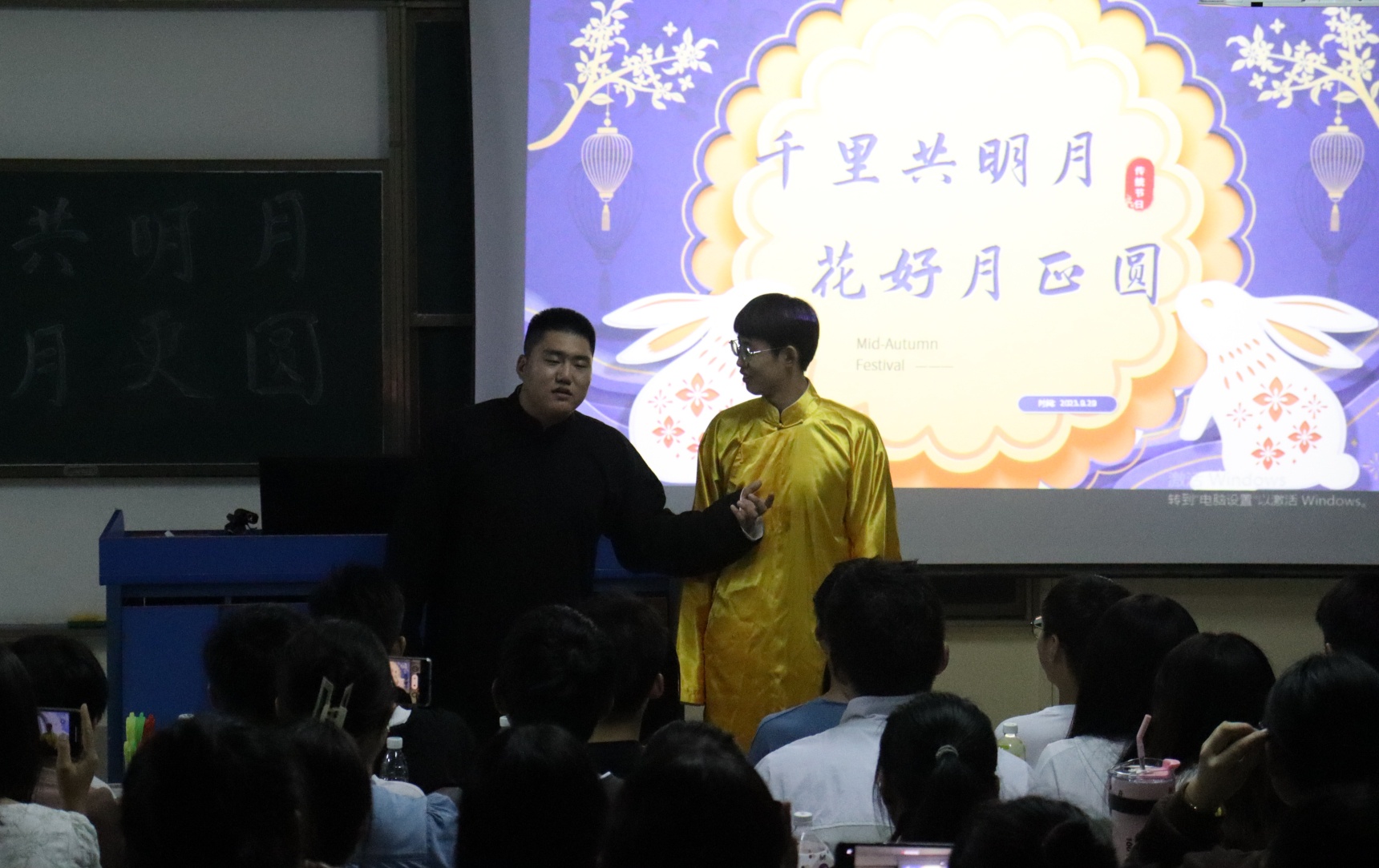 中秋佳节,团团圆圆,新生们共同相聚此地,不正是一次团圆?难忘今宵,今宵难忘。美好的时光总是令人回味。让我们携起手来,共同开创美好的明天!小十再此祝大家身体健康,工作顺利,万事如意!我们为了共同的目标而奋斗,我们为了美好的未来而相聚。最后让小十再说一声——中秋快乐!!!