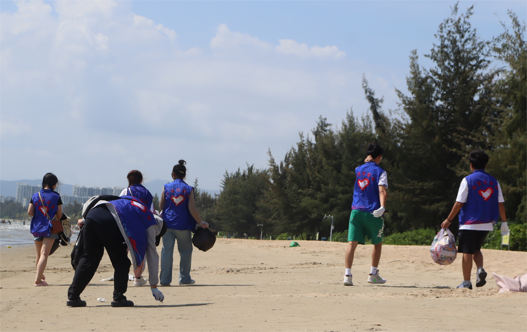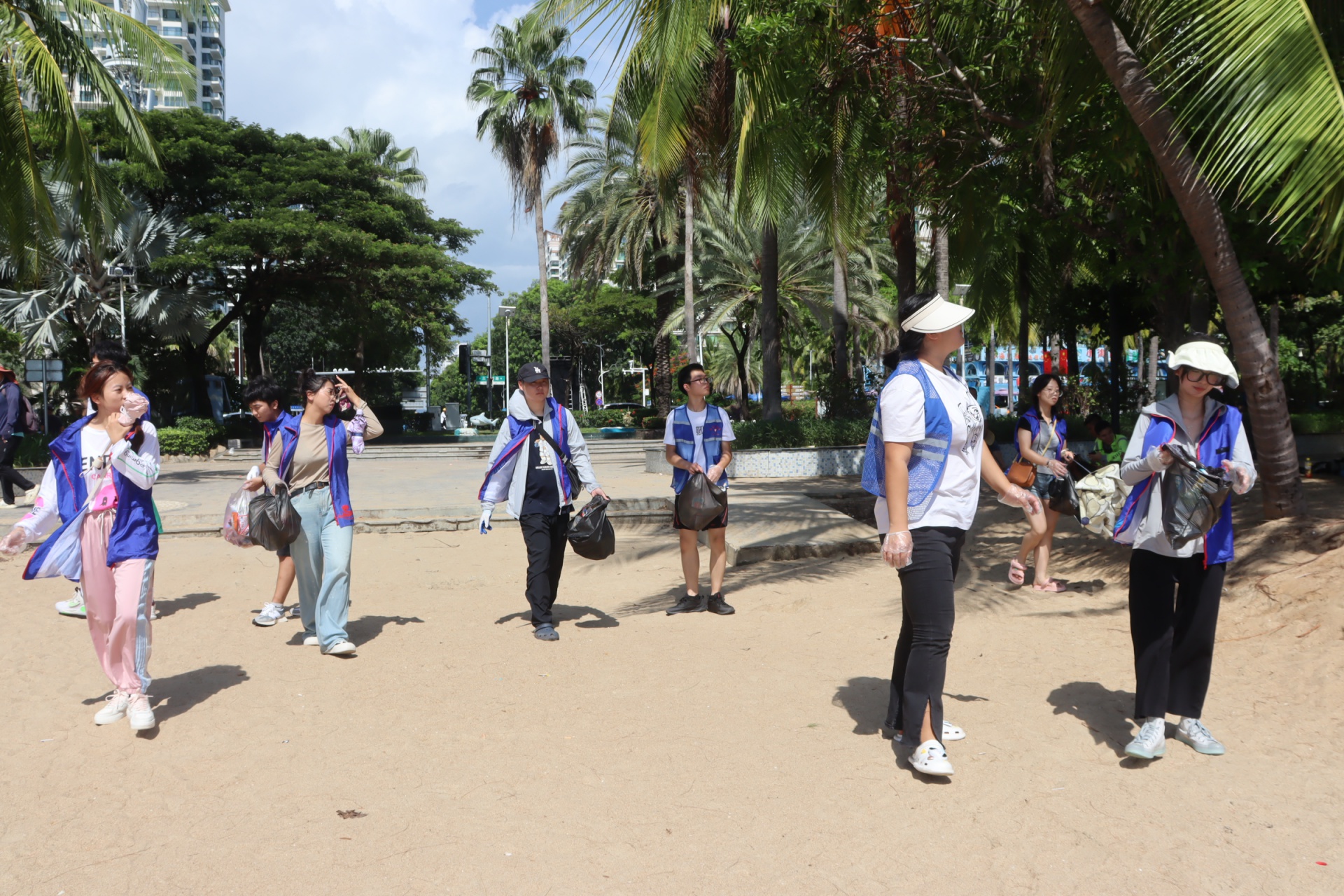 国庆期间,三亚的游客量激增,给三亚的海滩环境保护带来了极大的压力。为了保护生态环境,展现我校大学生爱护环境和积极奉献社会的精神风貌,健康医学院/健康产业管理学院于十月四号下午在三亚湾开展了净滩活动,志愿者们统一搭乘公交车到达碧海蓝天,在实地观察过以后,志愿者们迅速展开了活动,将海岸一带的的垃圾逐一丢进垃圾桶内,并在活动开始前后都留下了合影作为留念。
