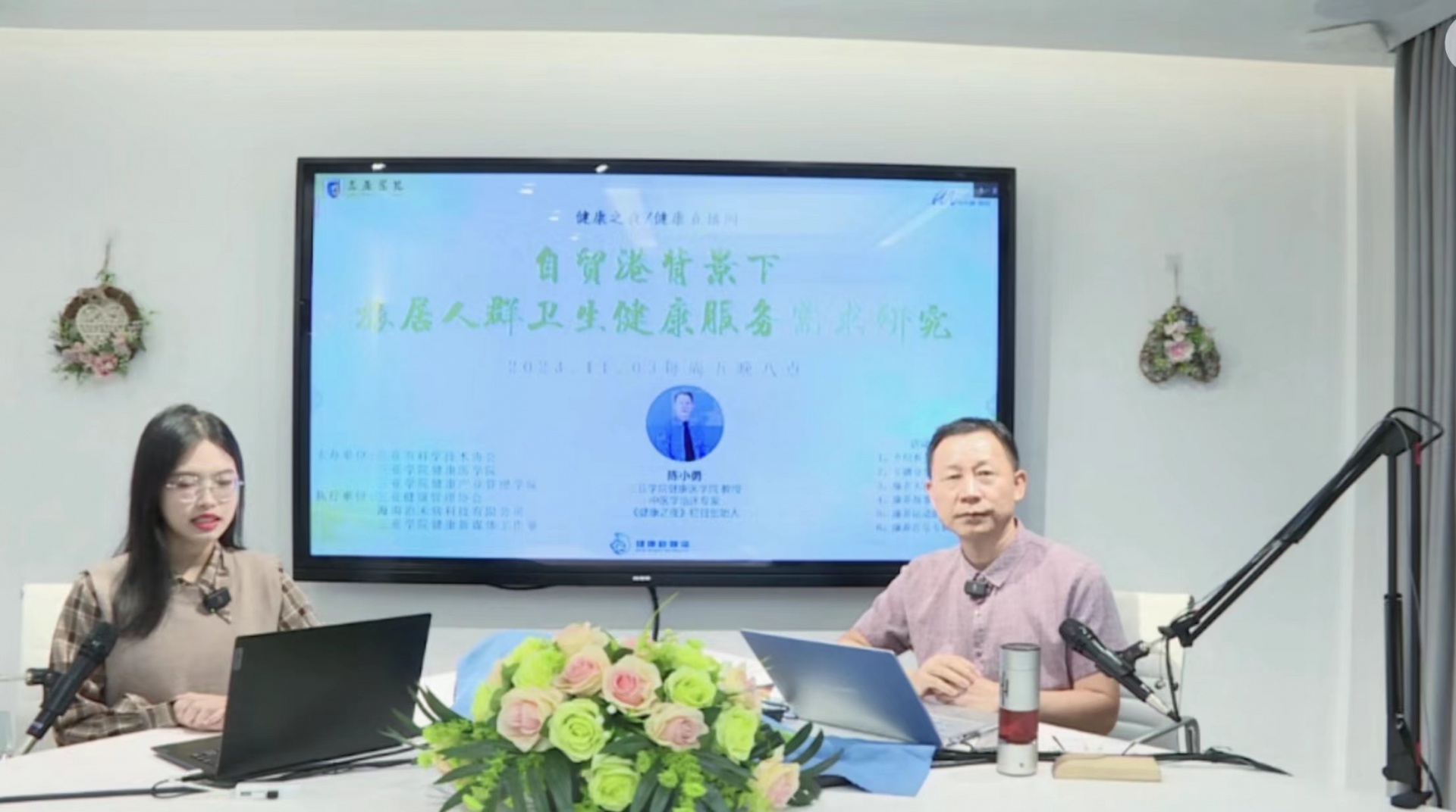 2023年11月3日晚20点健康医学院/健康产业管理学院在线开展了以“自贸港背景下人群卫生服务需求研究”为专题的健康之夜活动。本次活动由三亚学院、中国健康促进与教育协会健康产业专业委员会、中国中医药研究促进会健康旅游分会指导;三亚市科协、三亚学院健康医学院|健康产业管理学院联合主办、三亚健康管理协会、海南治未病科技有限公司、三亚学院健康新媒体联合执行;三亚学院健康管理中心、三亚学院音乐康养工作室支持。本次活动出席嘉宾三亚学院健康医学院专家,中医学临床专家,《健康之夜》栏目创始人陈小勇教授。