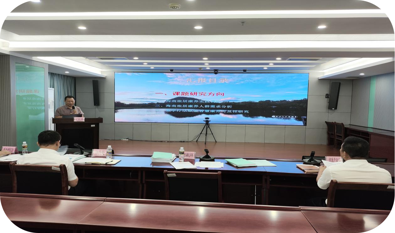 陈小勇院长从课题研究方向、海南旅居康养实践调研、海南旅居康养人群需求与数字疗法赋能智慧康养可及性研究四个方面进行汇报。