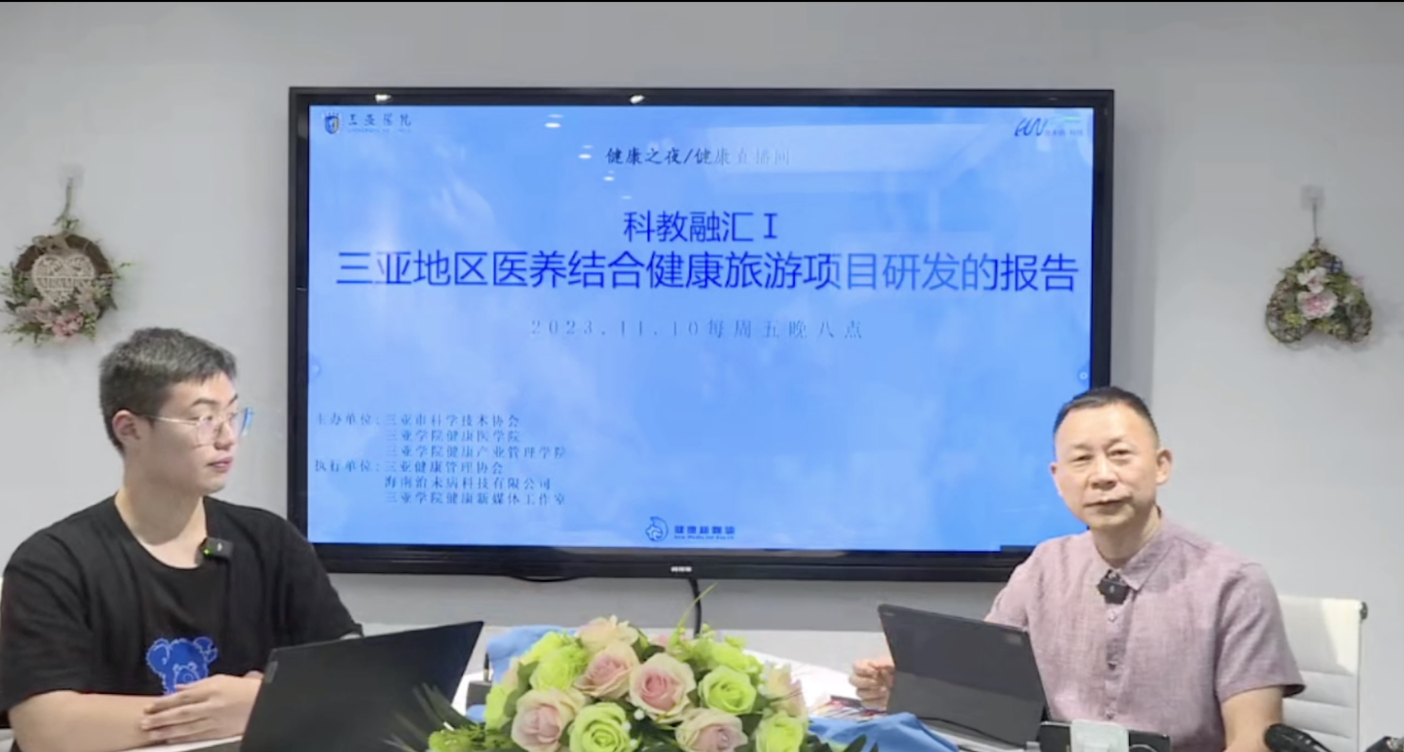 2023年11月11日晚20点健康医学院/健康产业管理学院在线开展了以“三亚地区医养结合健康旅游项目研发的报告”为专题的健康之夜活动。本次活动由三亚学院、中国健康促进与教育协会健康产业专业委员会、中国中医药研究促进会健康旅游分会指导;三亚市科协、三亚学院健康医学院|健康产业管理学院联合主办、三亚健康管理协会、海南治未病科技有限公司、三亚学院健康新媒体联合执行;三亚学院健康管理中心、三亚学院音乐康养工作室支持。本次活动出席嘉宾三亚学院健康医学院专家,中医学临床专家,《健康之夜》栏目创始人陈小勇教授。
