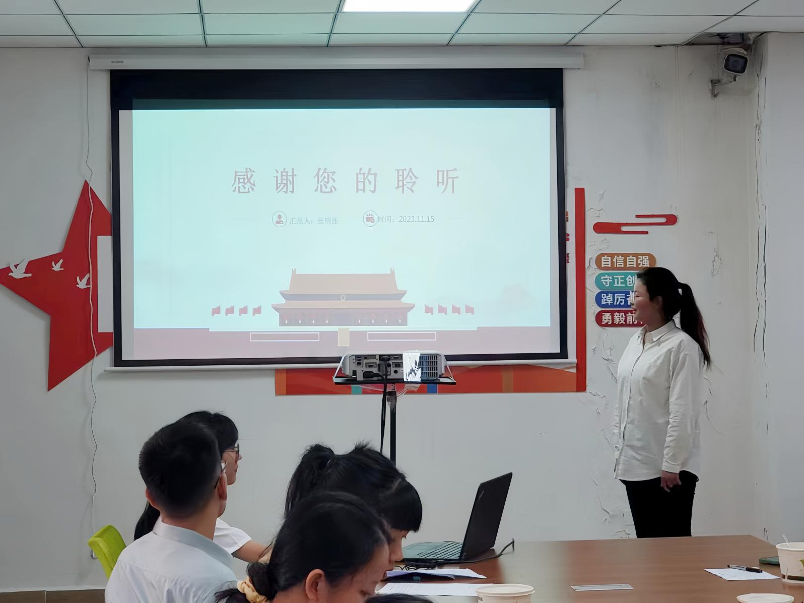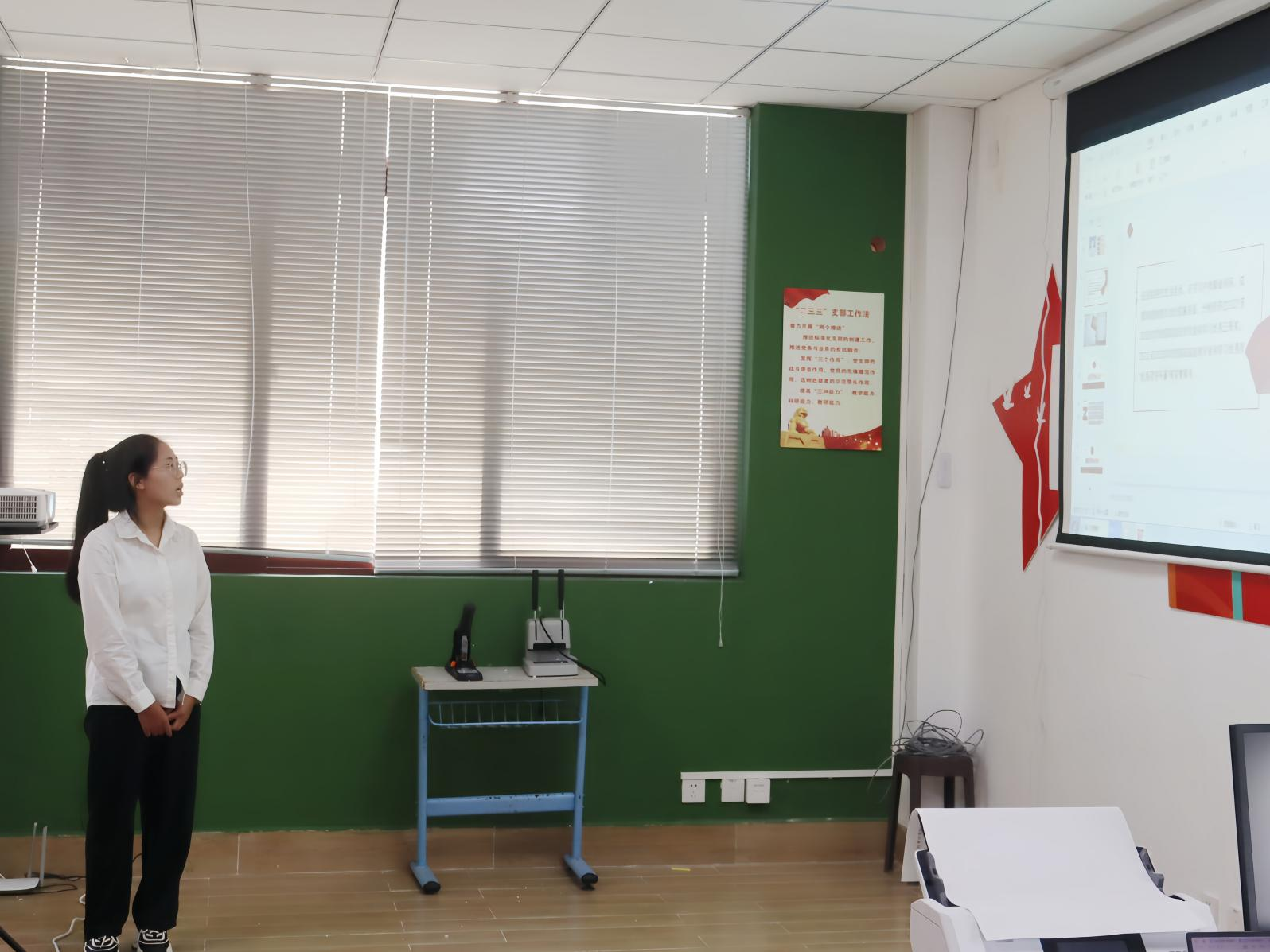 (李静茹老师宣读支部大会决议)