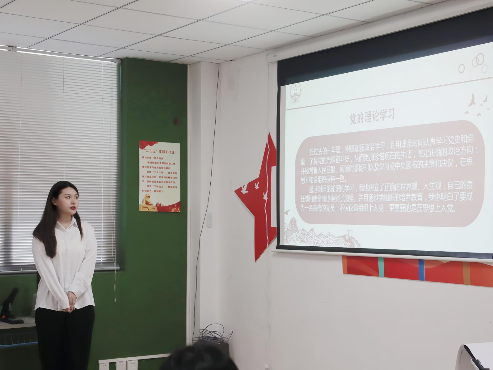 王小蕊老师表示,郑美琪同志在学习上认真踏实,对待工作仔细负责,同意以上两名同志被吸收为预备党员。