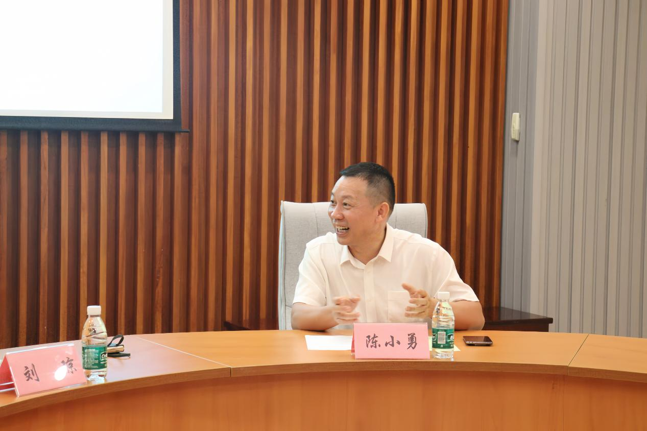 之后刘董事长阐明此行主要目的:希望与我院建立产教融合或其他方面的合作。诸位嘉宾都表明各自对此次合作的态度与希望合作方向。陈小勇院长表示赞同,而后向嘉宾展示他的课题研究: