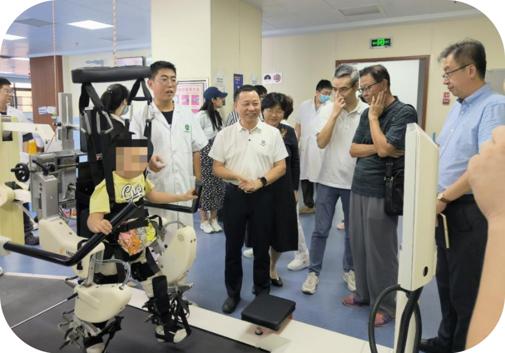 在院方代表的带领下,依次参观了康复大厅、物理治疗室、作业治疗室、言语治疗室等,并介绍相关康复仪器的使用操作,了解20级康复治疗学专业学生临床教学情况。