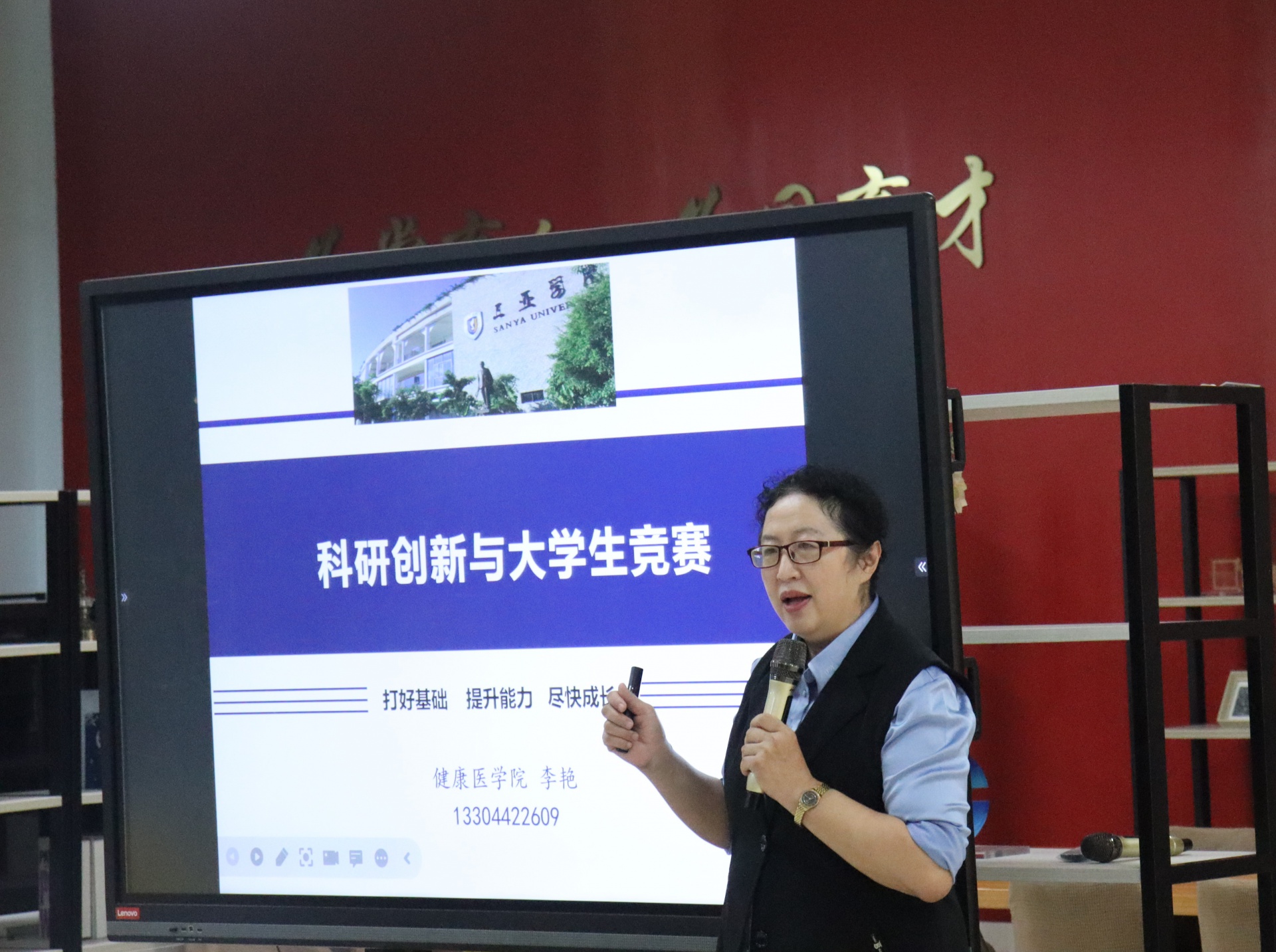 为了更好帮助同学们了解科研创新与大学生竞赛,2023年11月30日,三亚学院健康医学院/健康产业管理学院副院长李艳在书海馆一楼学生中心学业大厅为同学们的科研创新与大学生竞赛进行指导。