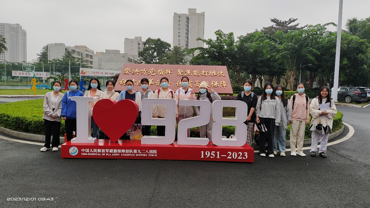为了使学生们能更好地将学校学习的理论知识运用到实践操作中,2023年12月1日健康医学院/健康产业管理学院的刘思楠老师将护理专业的学生们送到海口市中国人民解放军联勤保障部队第九二八医院进行为期5个月的实习。