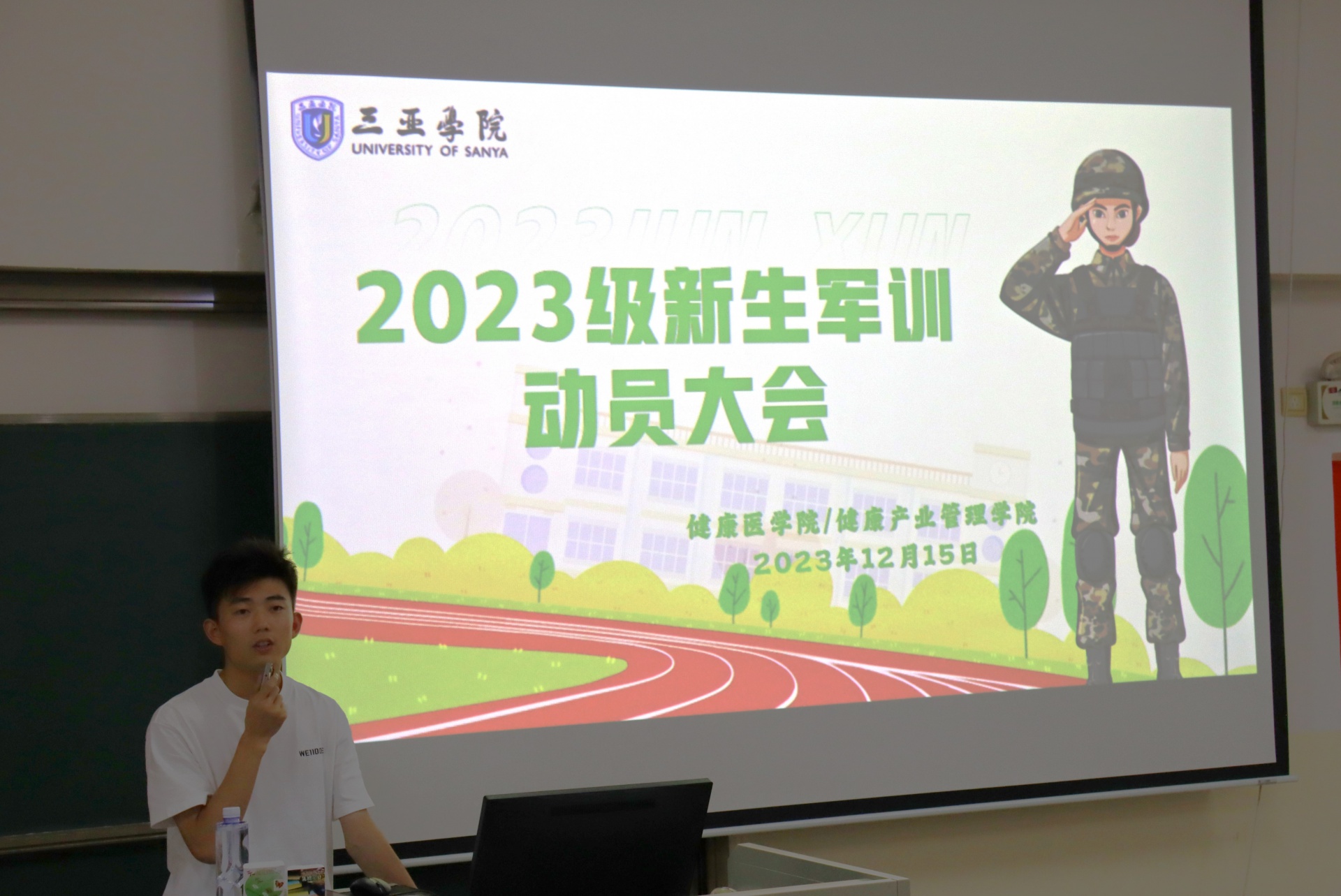 为让同学们认识到军训的重要性和提醒同学们军训相关注意事项,2023年12月15日下午两点半,健康医学院/健康产业管理学院李炳坤老师在书知楼2401为2023级的同学们召开军训动员大会。