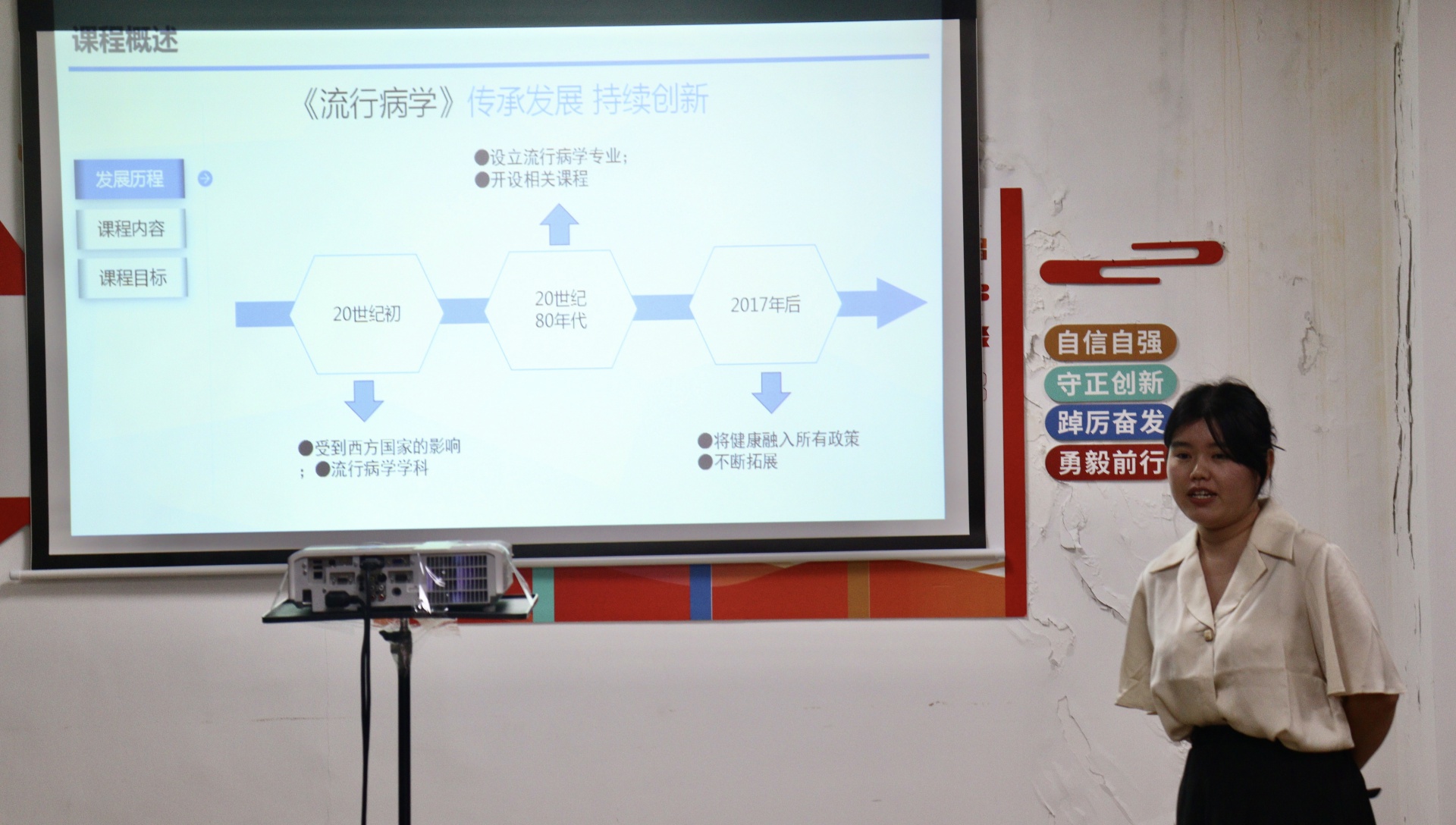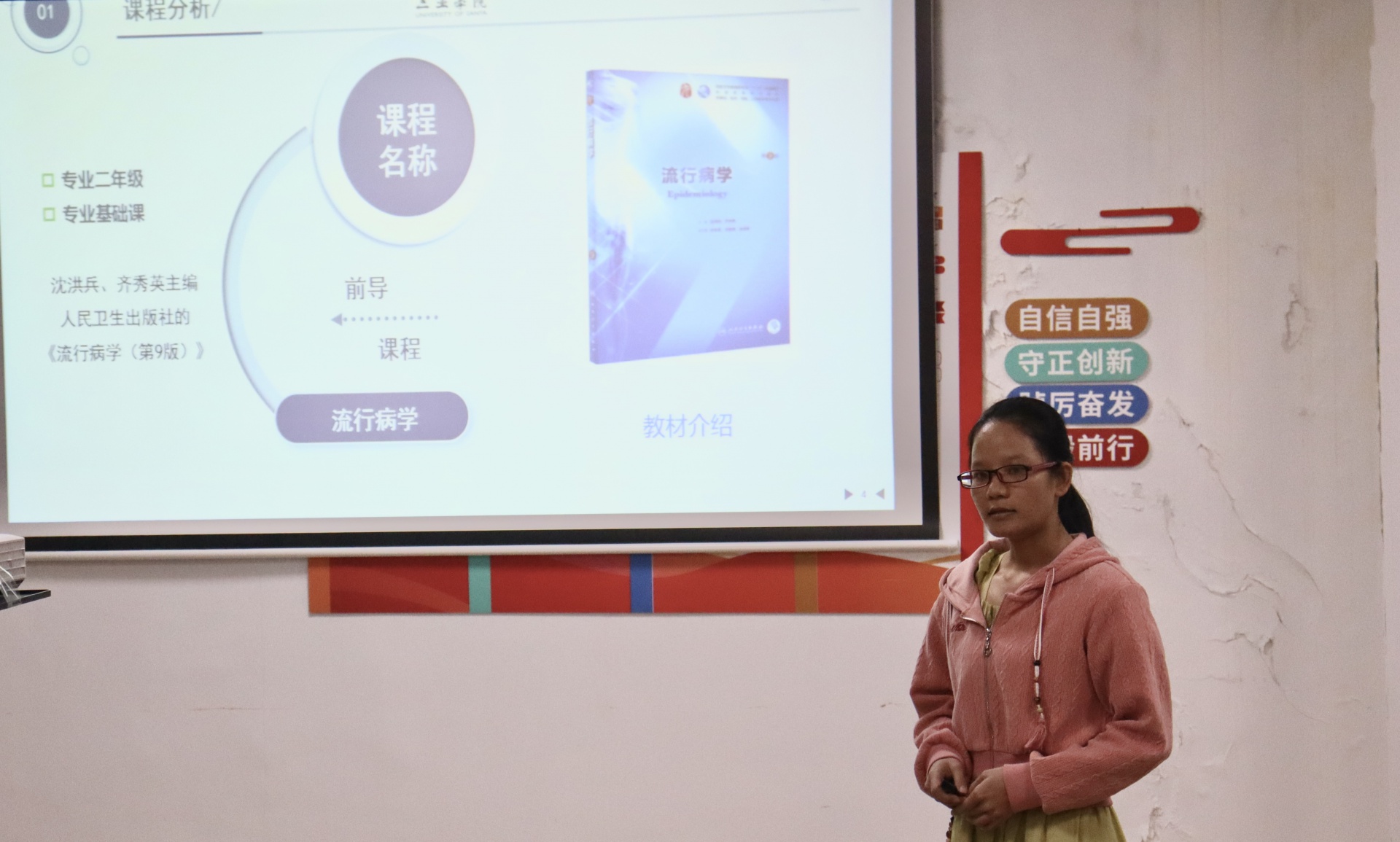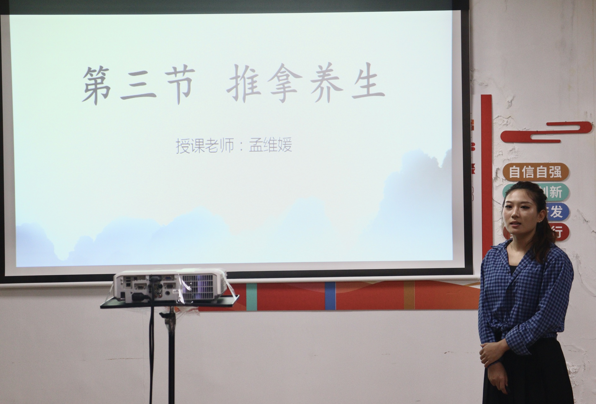 孟维媛老师提出在面对不同基础的学生要及时兼顾,通过用生动的PPT向大家展示了推拿学的历史过程。在此过程中,不仅向学生强调课程的理论知识很重要,还引导学生要学会自主学习。