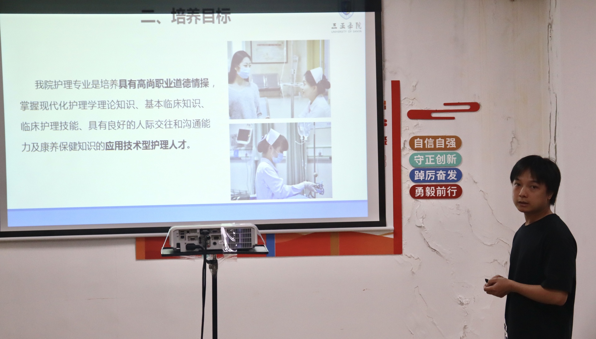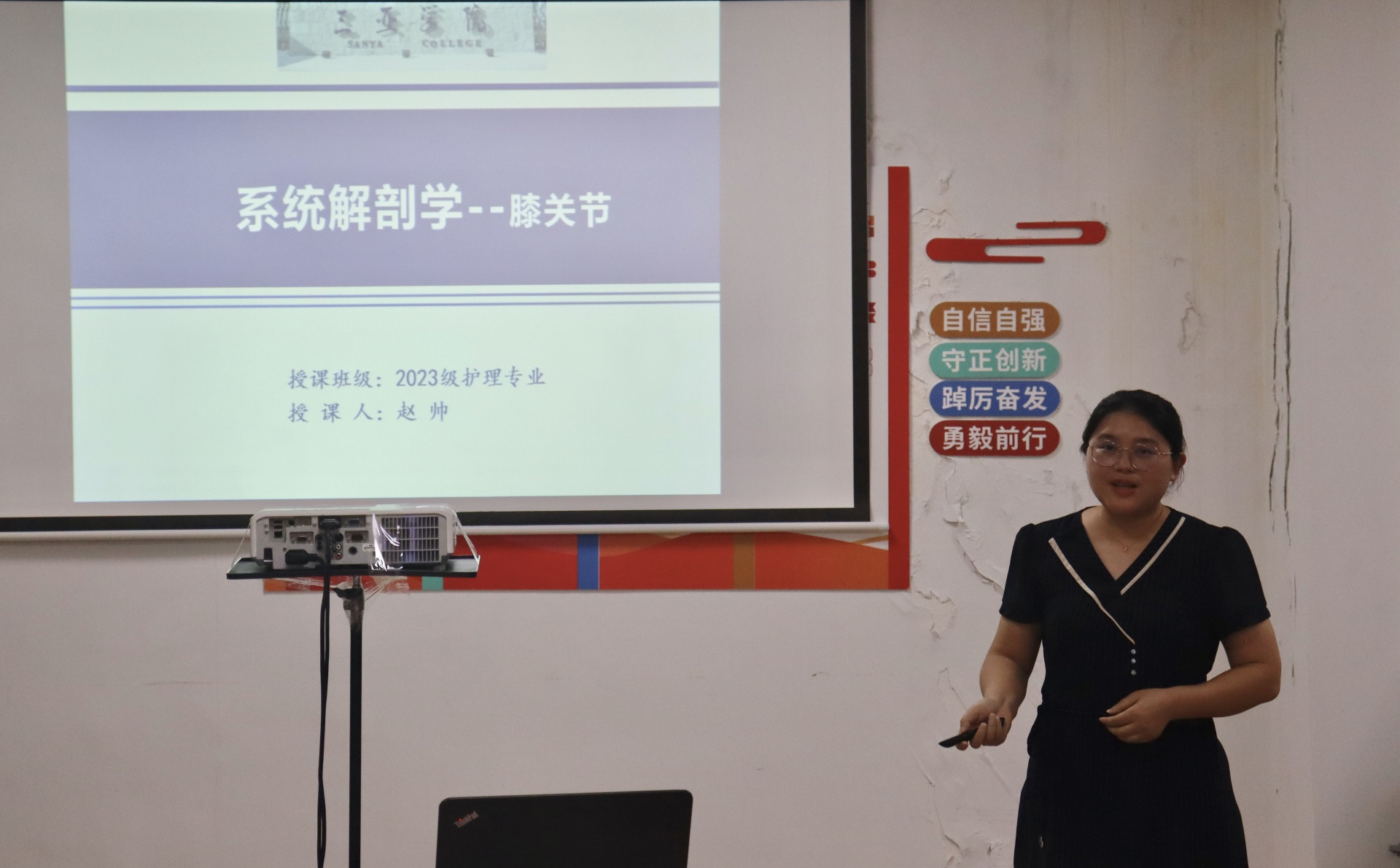 谢妍老师强调要提高学生们的兴趣,在健康养生学的课堂上采用“尝试法+演示法+任务驱动法”三段式教学法来加强学生们的医学基础知识和认知能力,并坚持以教师为主导,学生为主体的教学原则。