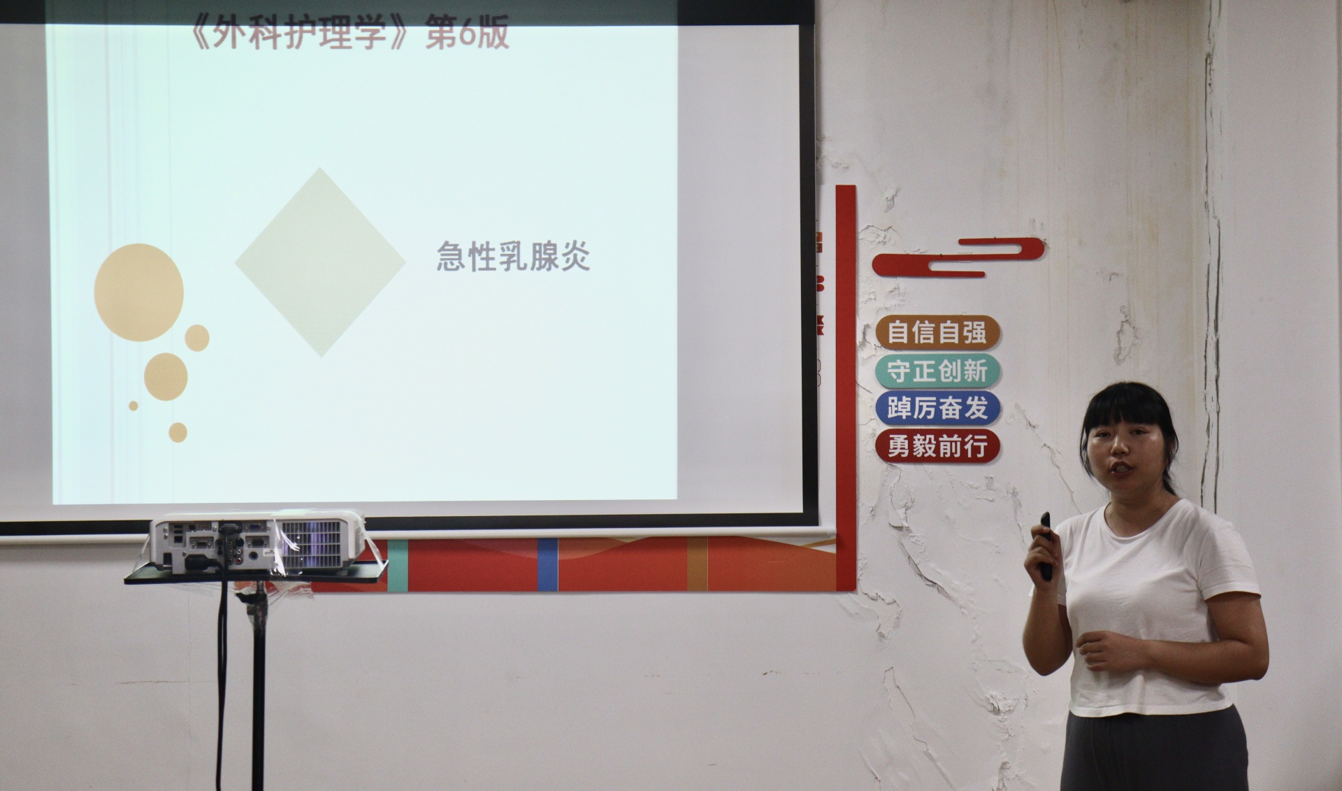 李云玲老师着重强调在外科护理学中急性乳腺炎的重要性,学生们要学会掌握该知识点的概念、如何进行护理等重要知识点。并且要求学生们要学会应用护理程序对急性乳腺炎病人实施整体护理。