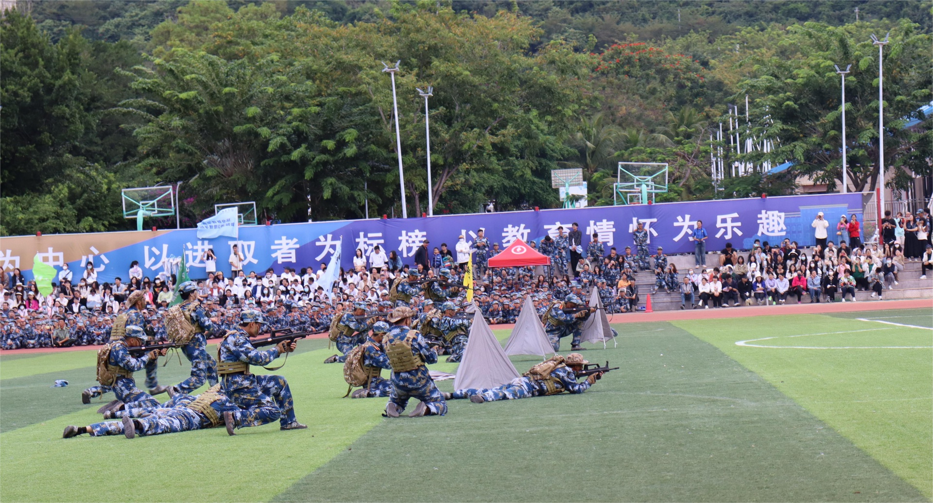 2023年12月28日早晨,在三亚学院东区田径场举办了三亚学院2023级军训总结大会暨三亚学院、三亚理工职业学院2023年体育欢乐节。难忘的14天军训也在这个早晨落下帷幕。