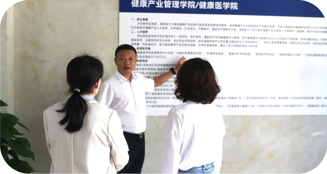 同时,三亚学院戴胜才主席在接待中医药康养游学团时,介绍及交谈第七届中国(三亚)健康产业创新发展论坛暨“三九养生健康节”活动开展情况,获得游学团嘉宾的一致好评和认可。推动了三亚学院与中医药康养游学团友好关系的发展延续。