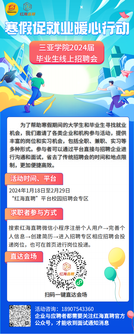 寒假就业信息推送(三亚学院招生就业处公众号)