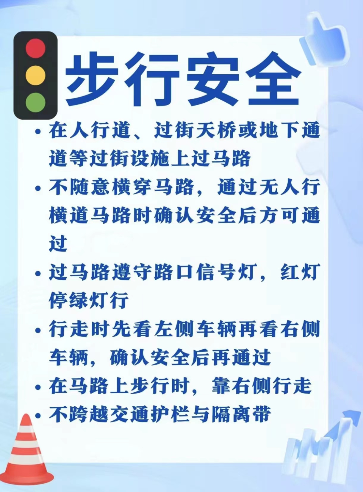 (7)不要钻越、跨越人行护栏或道路隔离设施。