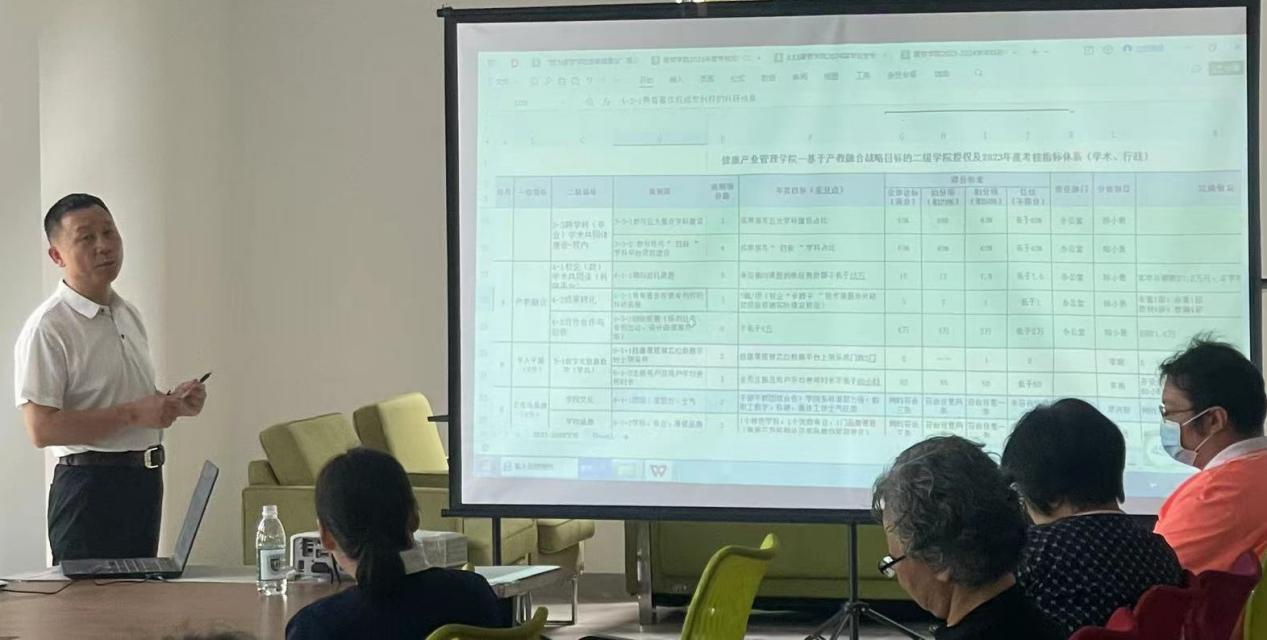 在健康医学院/健康产业管理学院院长陈小勇的带领下,与全体教职工一同将会议高效的展开。首先由刘玉芬老师对教学工作清单的总结汇报,对学生们的学习进度和掌握情况以及教师的教学方法,提出了针对存在问题的改进措施和建议,以优化教学清单的实施效果。