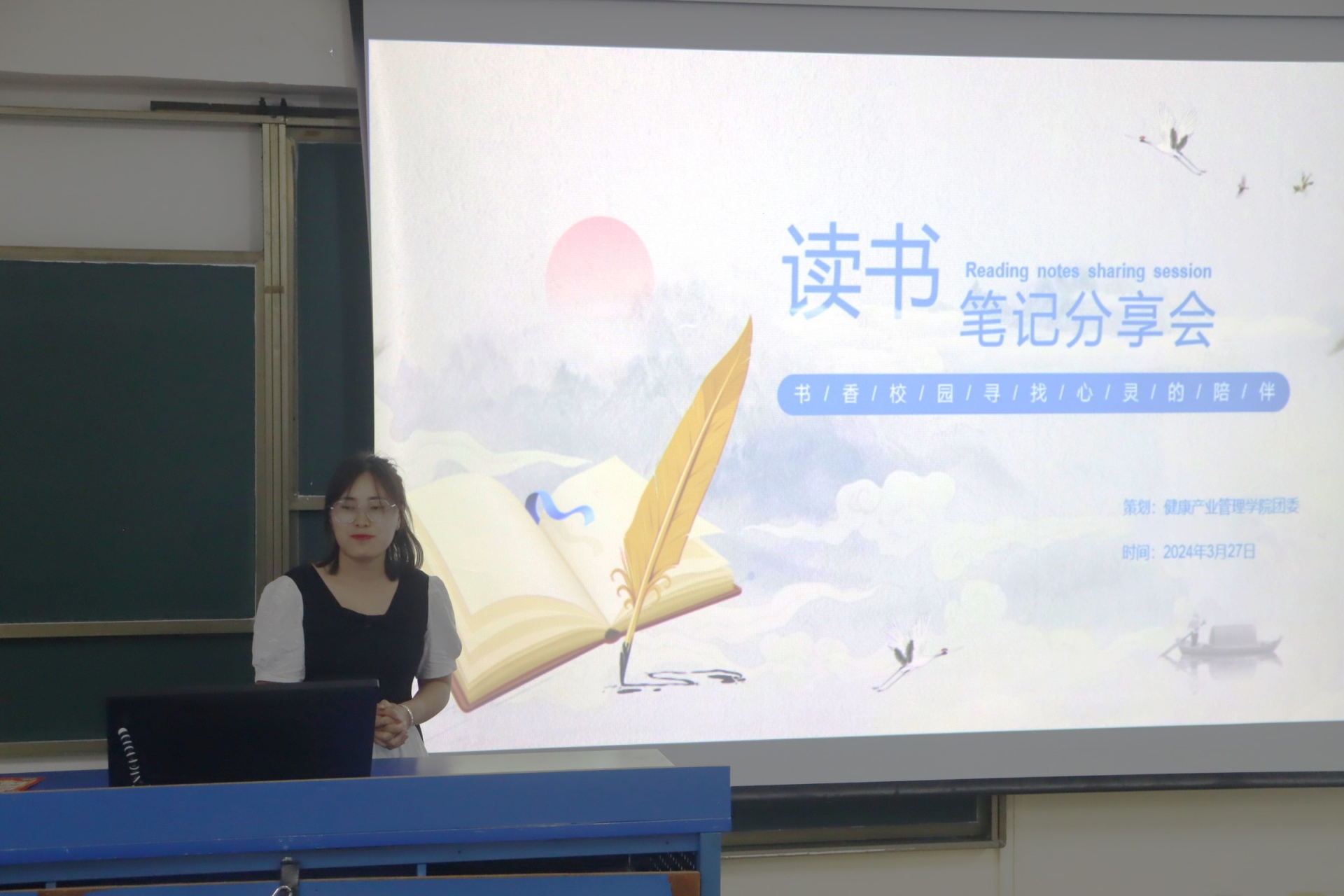为加强学院学风建设,响应书香校园的号召,激发大家对阅读的热情,提升自己的知识水平以及对文化的掌握程度,展示青春风采,传承时代优秀精神,凝聚青年奋斗力量,健康医学院/健康产业管理学院于2024年3月27日晚七点在书知楼2301教室举办以“书香三月,笔墨生花”为主题的读书笔记分享会活动。