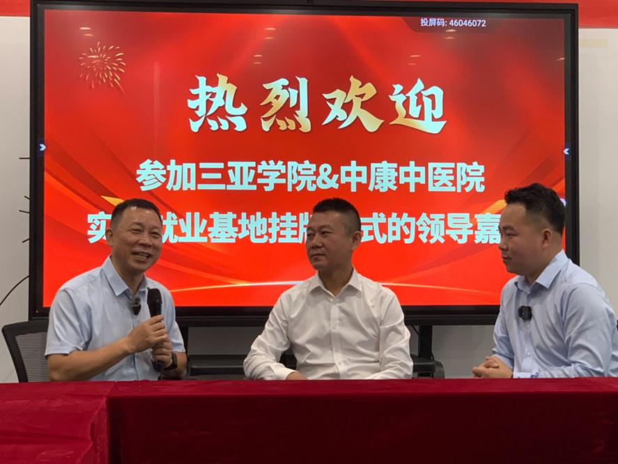 随着实习就业基地的建立,不但为学生们提供了接触和学习中医药文化的机会,而且注入红色文化让同学们传承并发展红色精神,更是为学生在不久的将来投身基层医疗服务、传承和发展中医药技艺奠定了夯实基础。中康中医院作为中医药文化传承的重要载体,将充分发挥其在中医药研究、教学和临床应用方面的优势,为培养更多具备中医药知识和技能的优秀人才贡献力量,为更好的促进产教融合及科教融汇,三亚学院健康医学院陈小勇教授分别与海南红星产业投资集团有限公司刘松董事长、中康中医院杨帅院长及开国将军曾雍雅之女、人民法治红色文化研究中心执行主任曾莹开展座谈讲解,如图二、三所示。